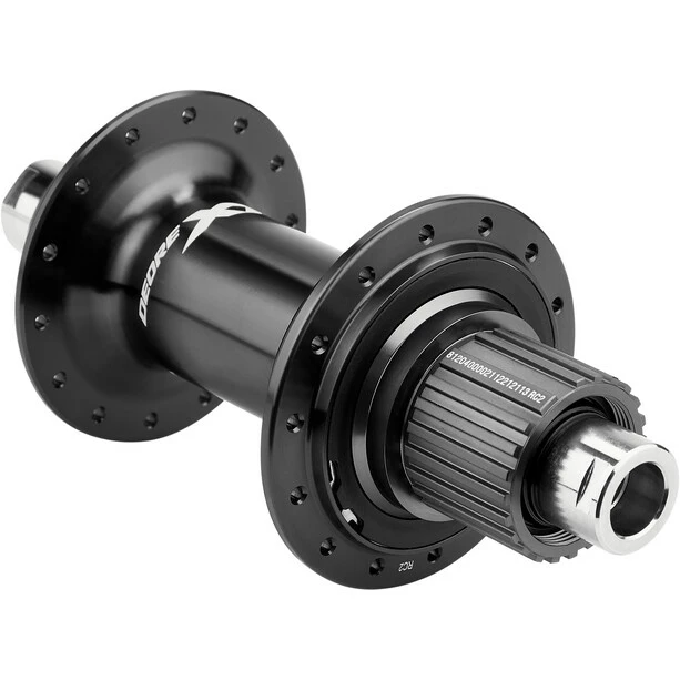 Le moyeu à cassette Shimano Deore XT est compatible avec les cassettes Micro Spline à 12 vitesses et intègre la technologie Scylence pour une rigidité accrue et un fonctionnement plus silencieux.